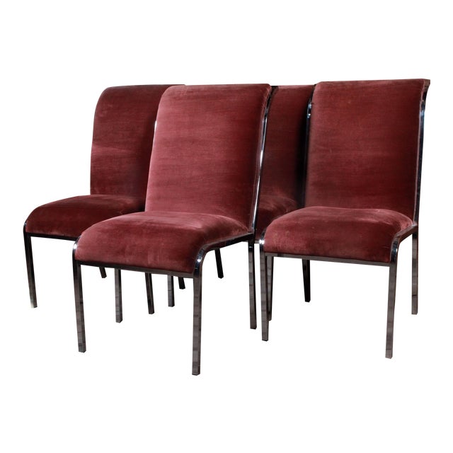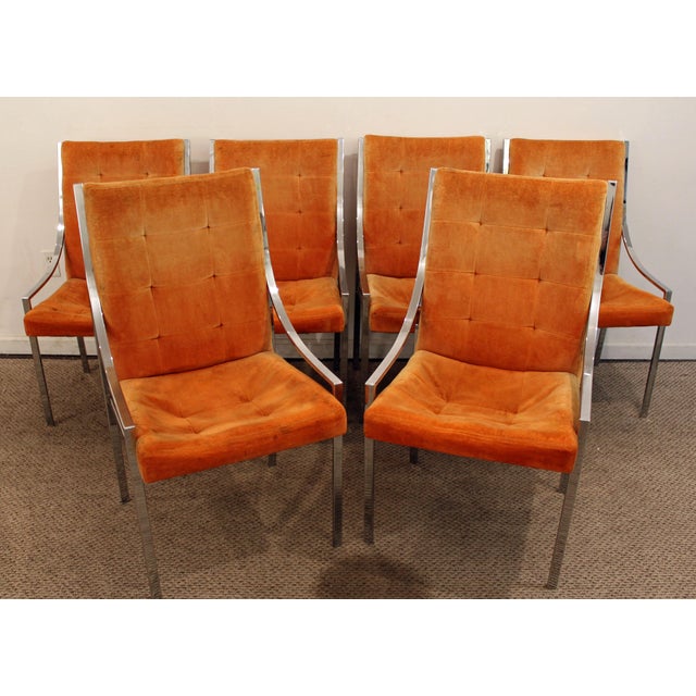 Milo Baughman Chrome Dining Chairs : Milo Baughman Chrome & Velvet Dining Chairs - Set of 4 ... - The set consists of four arm chairs and 4 side chairs.